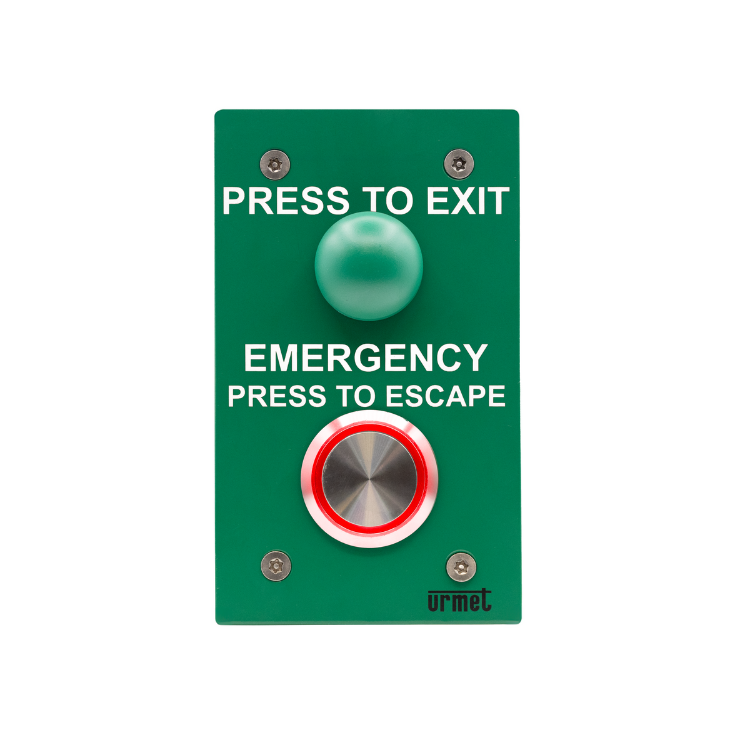 Dual-Button ‘ExiTimer’ Self Resetting Emergency Exit System combines a ‘mushroom head’ request to exit button, with a stainless steel emergency escape button.